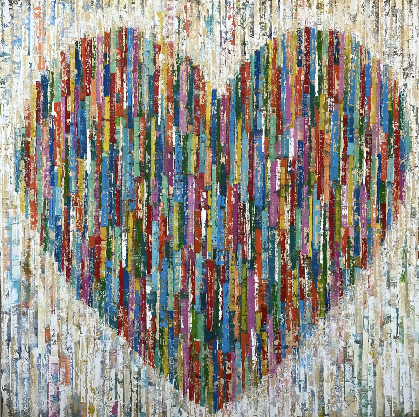 Janet Hamilton is a contemporary abstract painter in Nashville, TN. Her work is deeply inspired by color and the relationships that develop from its interactions. She creates heavily textured and multi-layered, mixed-media paintings using oil paints, acrylics, beeswax, spray paint, and found paper. Using knives instead of brushes to create depth, she stacks the paint in a rhythmic, sometimes chaotic pattern.